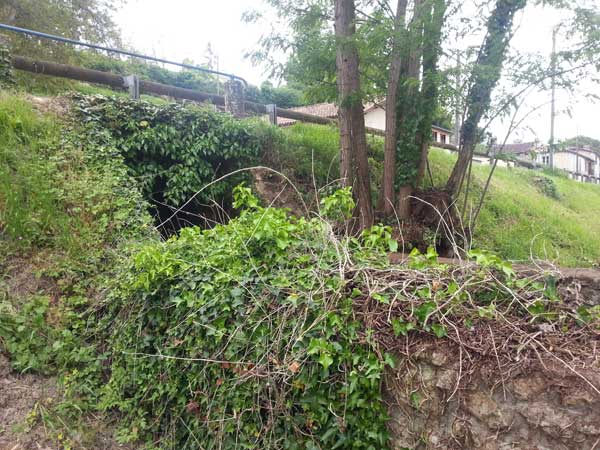Un arbre tombe sur la route du moulin, juste au dessus du port de Castets-en-Dorthe. Le danger ne vient pas spécialement du côté qu'on l'attend !