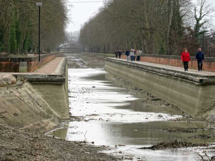 | Le bief de Saint Roch, où se situe le port est vide d'eau et forcément de bateau. | ![]() |