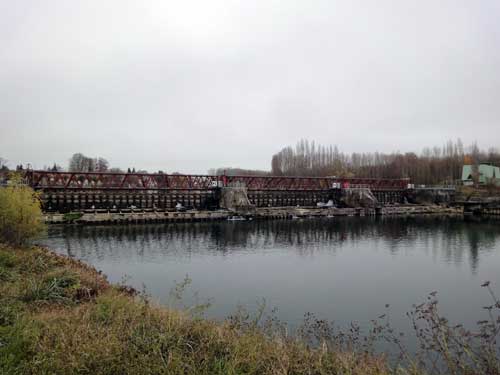 | Ce jour-là le pont-canal est en chômage et vide mais Garoonne est en crue. Comment cela ? Mais regardez ici | ![]() |