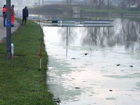 | A la hauteur des silos, on s'aperçoit que les rives sont dans un triste état. | ![]() |