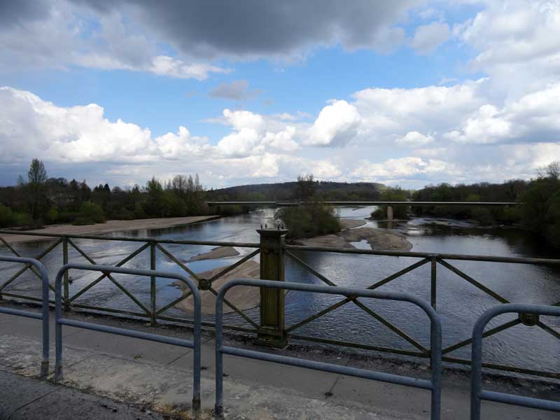 Nous retraversons encore une fois la Loire sur le pont-canal, long de 243 mètres supporté par 10 piliers, ancrés à 3 mètres de profondeur, au dessous des basses eaux de la Loire. |