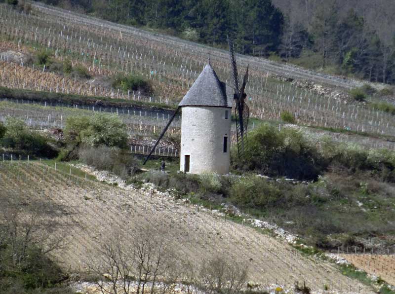 Depuis le canal on peut apercevoir le moulin de Sorine emblème de Santenay, côte de Beaune. |