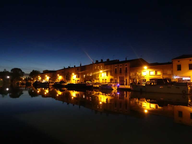 La nuit tombe, demain une nouvelle journée va commencer avec sûrement un embouteillage à la première écluse de La Planque. |
