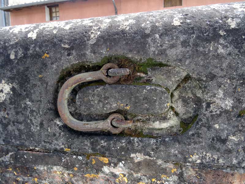 Le capitaine est pourtant passé plusieurs fois à Moissac, tout comme vous ! Ici aussi, comme sur le pont-canal de Briare et d'Agen il y découvre, seulement aujourd'hui, des poignées... Ici, elles sont parallèles à l'onde ! |