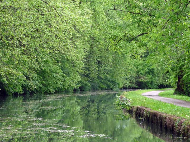 Le canal serpente entre les platanes, ceux-ci sont pour l'instant épargnés par la maladie, le chancre coloré, (Ceratocystis platani) espérons que cela durera. |
