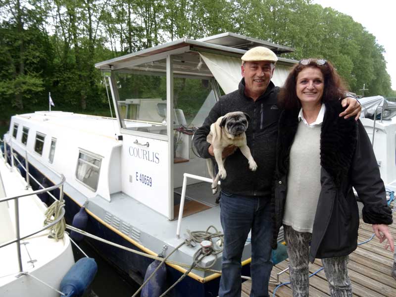 Le bateau est à quai, les nouveaux propriétaires et leur chien sont ravis et cela se voit ! | |