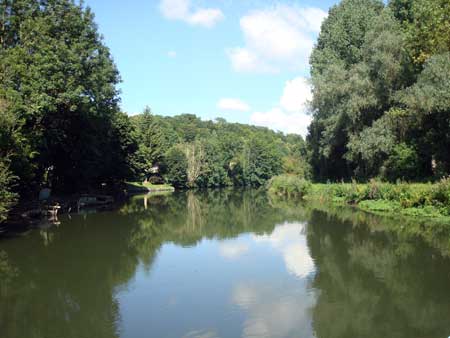 Allez vous perdre dans la zone des Rouissoirs. Lieu où le lin et le chanvre, cultivés sur la commune, étaient rouis. Le rouissage permet d'isoler la fibre textile des plantes. Subsistes de cette époque, les fossés et une surprenante "source bleue", une résurgence naturelle d'une eau très limpide (A votre souris) Lose yourself in the "Rouissoirs." Area where the flax and hemp, cultivated by the town, were rot. This technique can isolate textile fiber from plants. Still existing from this time, ditches and a surprising blue spring, a resurgence of very clear natural water (on mouse over) |