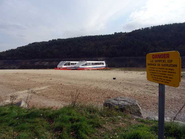 Il faut remonter sur les rives du "lac assec". Surprise, aucun ponton n'a été retiré, ils pendent sur les berges.