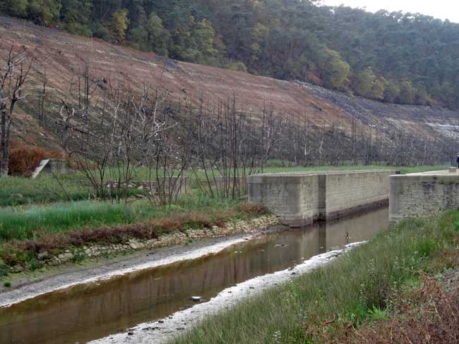 Le Blavet s'écoule par un autre tunnel, dans la tranche 2, qui sera remplacé par deux conduites qui deviennent les vannes de fond