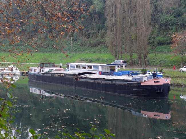 | Un Plaquet de Péronnes-les-Antoing, d’une longueur exceptionnelle de 52,24m x 5,08 construit en 1963, a été coupé en deux morceaux, dans l'eau, pour pouvoir passer les écluses au gabarit Freycinet (Longueur 39 mètres) et Becqueret (Longueur 31.50 mètres). Le convoi rarissime parti de Janville près de Compiègne a descendu l’Oise, remonté la Seine, traversé Paris, en un seul morceau. Elle a été coupé à Saint Mammès à l'entrée du canal du Loing qu'elle embouque. Puis c'est la descente vers le sud, par : le canal de Briare, le canal latéral à la Loire, le Canal du Centre, la Saône, le Rhône, le canal du Rhône à Sète, l'étang de Thau,le canal du midi et le canal de Garonne. | ||